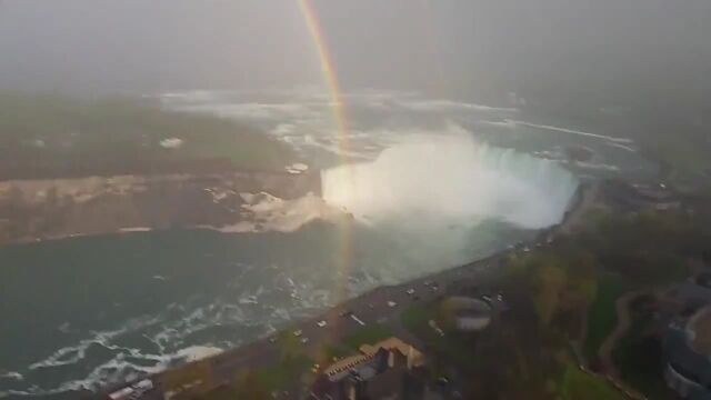 ナイアガラの滝を望む絶景ポイントに出現した、完全に円形となった虹。