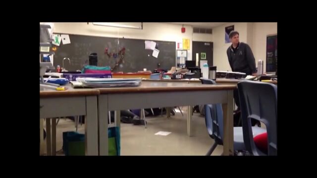非日常的な状況にうろたえてしまう先生の様子が面白い、生徒たち全員による死んだふりドッキリ映像。