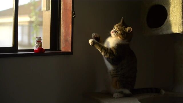 目指せ立派な招き猫!師匠を真似して特訓する猫のたろちゃん