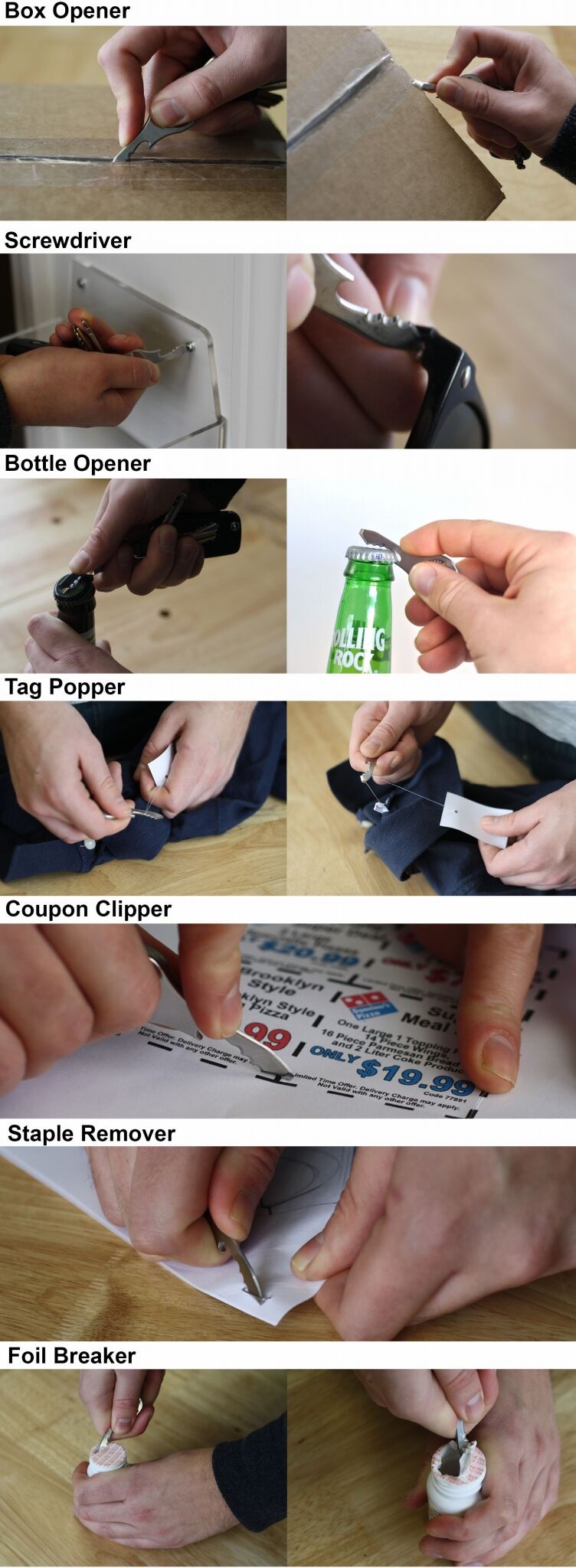 ダンボールや封筒を開けたり、紐を切ったり、ビールを飲んだりという日常よく行う行為に対応してるし、カギと一緒にキーホルダーにつけとけばいいし、これはなかなか便利そう。