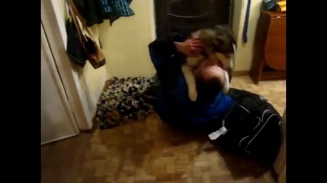 アフガニスタンから帰った飼い主を、これ以上ないほど大歓迎する犬