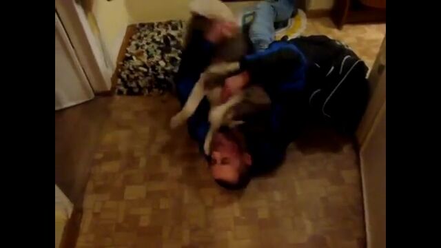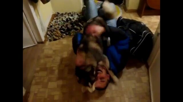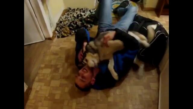 彼自身、嬉しすぎて混乱しているような状態で、飛びかかり体をすりつけ、ペロペロしたりカミカミしたり大忙し。