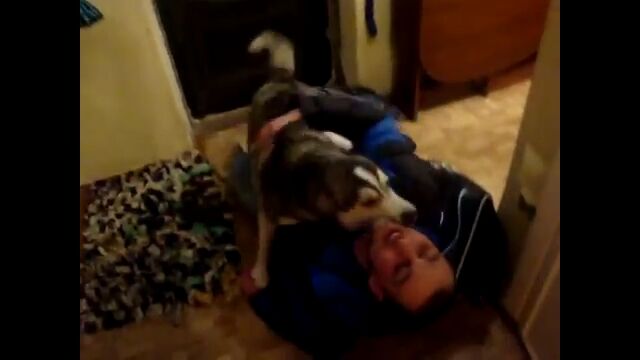 旅行で1ヶ月半家を空け、久しぶりに帰ってきた飼い主を出迎えるハスキー犬の歓迎っぷりが凄い。