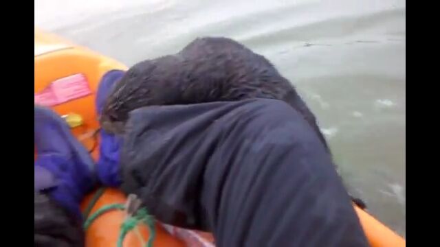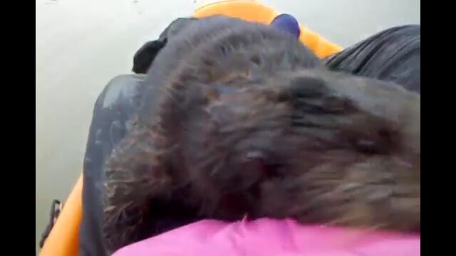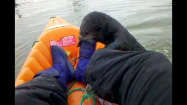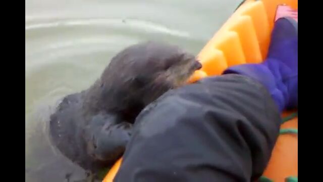 海でカヤックを楽しんでいたら、突然現れカヤックに乗り込んでくるラッコ。