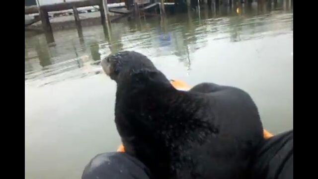 泳ぎ疲れた赤ちゃんアシカがボートに乗ってきた!しかも膝枕まで要求してきた!という状況が羨ましすぎる