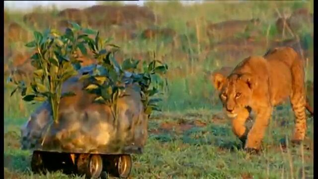 人間がライオンに近づいて撮影するのは危険だけど、遠隔操作なら大丈夫。
