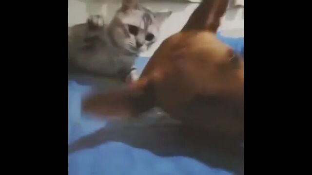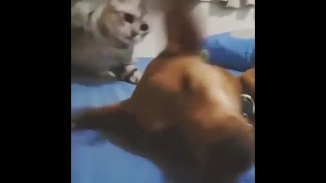 ごく普通の風景に思えたけれど、なぜか突然、犬への凶行に及ぶ猫。