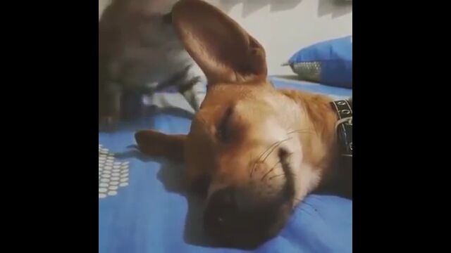 一体なぜ!?スヤスヤ眠る犬に対し、突然の凶行に及ぶ猫
