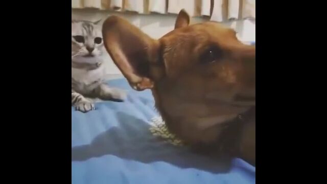 Q:一体なぜ!?スヤスヤ眠る犬に対し、突然の凶行に及ぶ猫