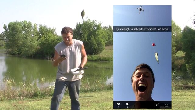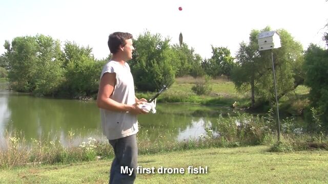 釣り竿の代わりにマルチコプターに釣り糸、釣り針、エサや浮きなどを装着し、魚を釣り上げるという釣り。