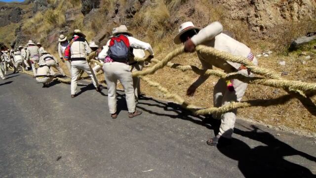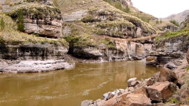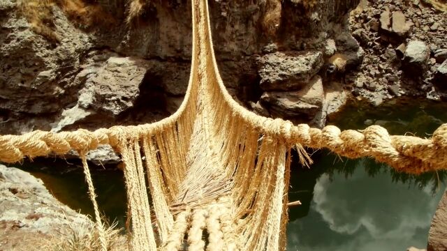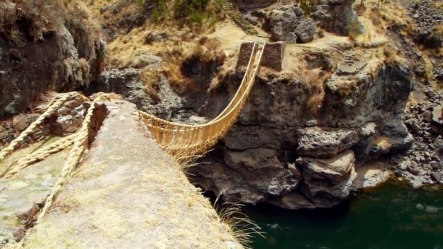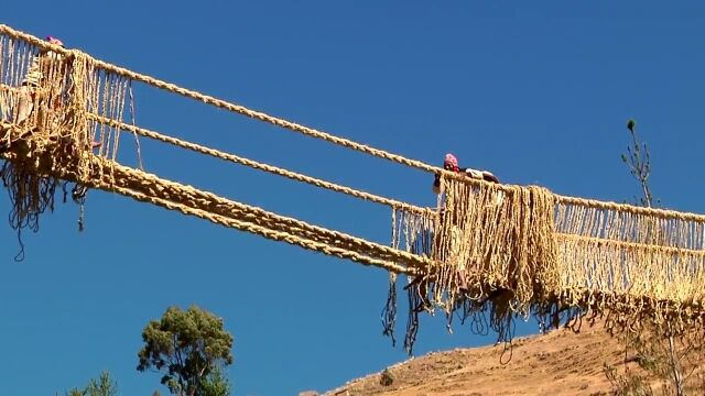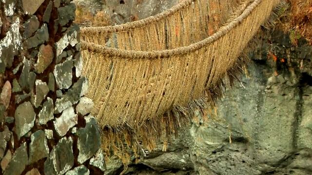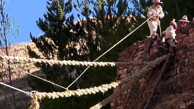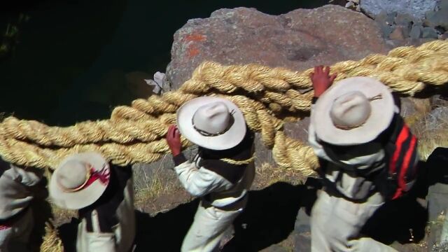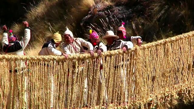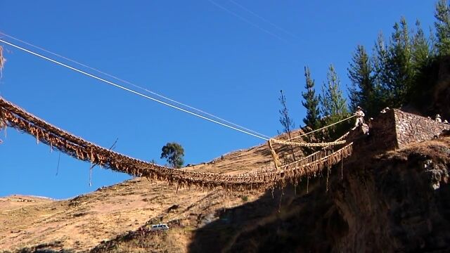 ペルー、アプリマク川周辺に暮らす村人たちが、インカの伝統技術を使って架ける、荒縄で作った吊橋、Q'eswachaka。