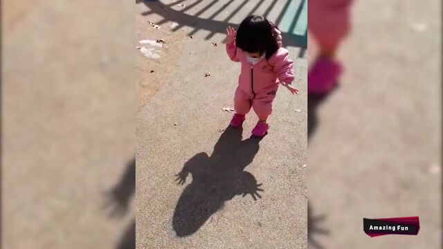 初めて自分の影を認識した幼児の反応が可愛い