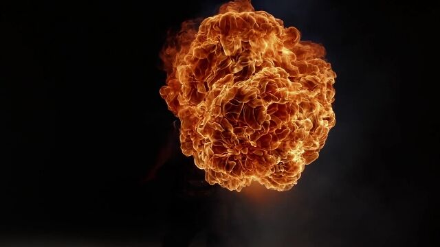 一時停止された炎が塊のまま横に動いて、炎の形が立体的によくわかる。