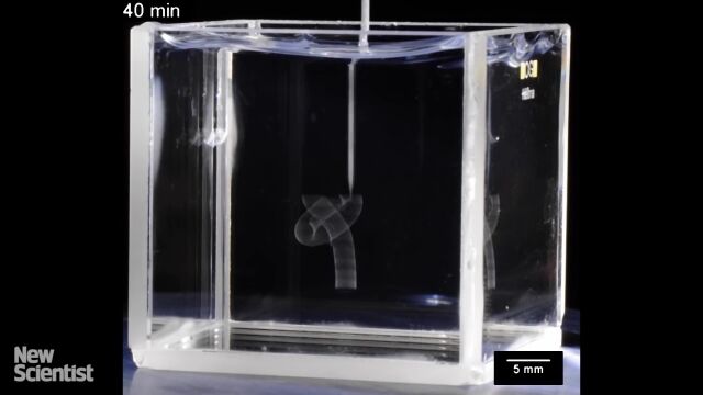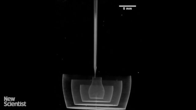 しかし、アクリル酸系ポリマーのジェルで満たした水槽の中に物体を成形していくこの方法ならば、支えがなくても倒れることなく、細かい形状のものを出力できる。