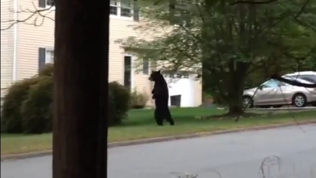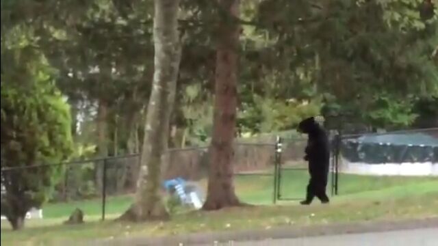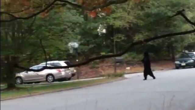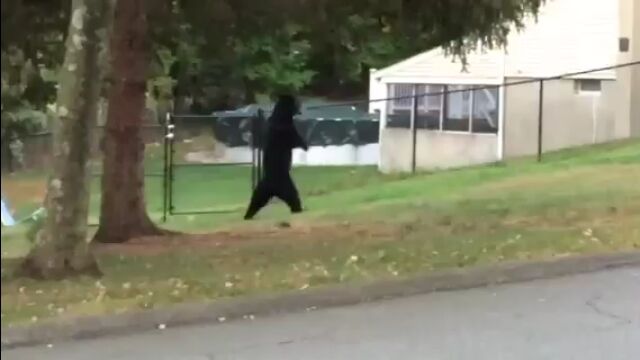 これは絶対中の人いるわ…。ニュージャージー州で早朝に目撃された二足歩行のクマが人間っぽすぎる