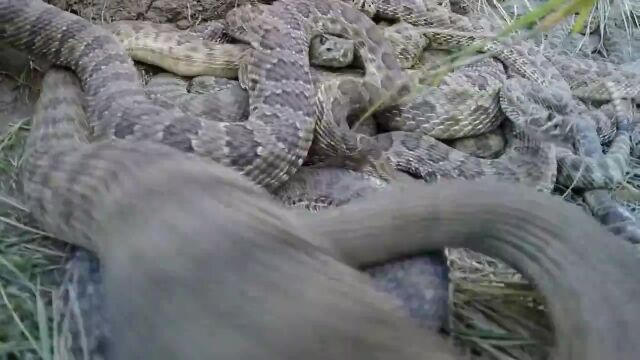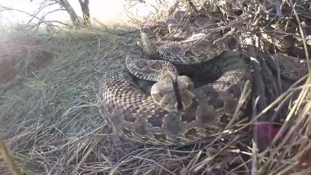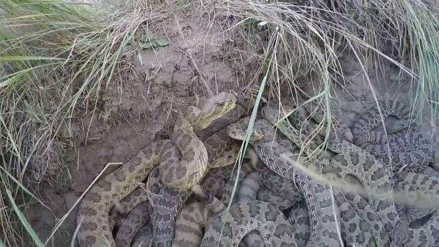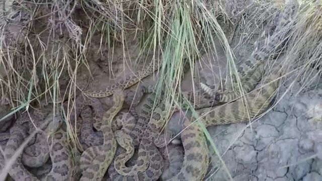 数十匹のガラガラヘビがシッポを鳴らしながら蠢く穴の中を、GoProカメラを伸ばして撮影した映像。