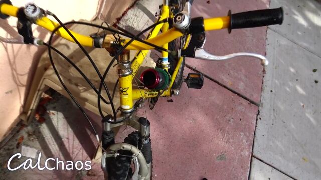 ドリンクホルダー内部にスタンガンを隠し、電極をサドル内部まで延長。遠隔操作でスタンガンのスイッチを入れられるようにした、自転車泥棒撃退自転車。