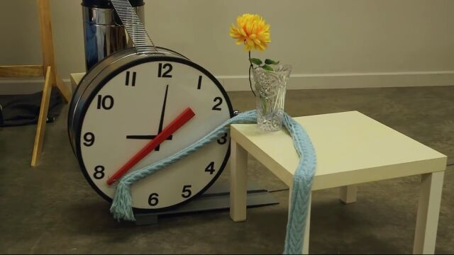起床時間にあわせて鳴り響く目覚まし時計を止めると仕掛けがスタート。