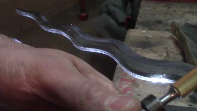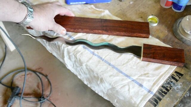 波打つような形をした刃が美しい独特なナイフ、クリスを作る、Jimmy DiRestaの職人技。