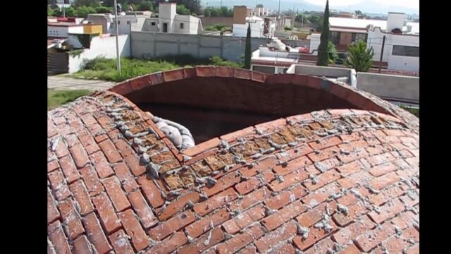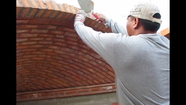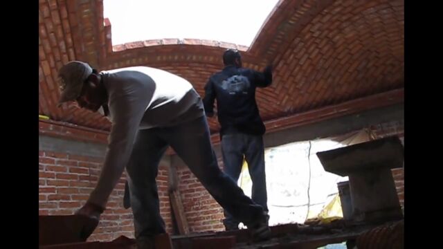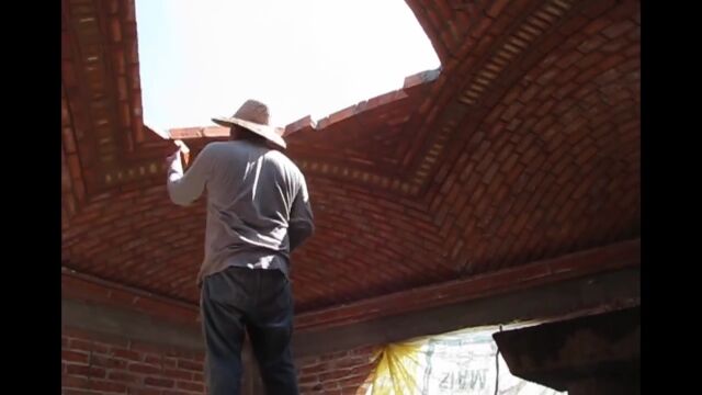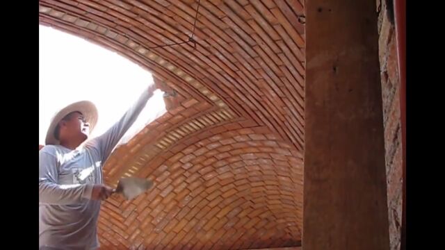 スペイン、カタルーニャ地方の伝統的な工法、カタロニア・ボールトを施工する職人さんの映像。