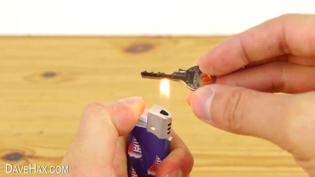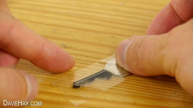 カギをライターで炙って煤をつけたら、カギを冷ましてセロハンテープで型取り。