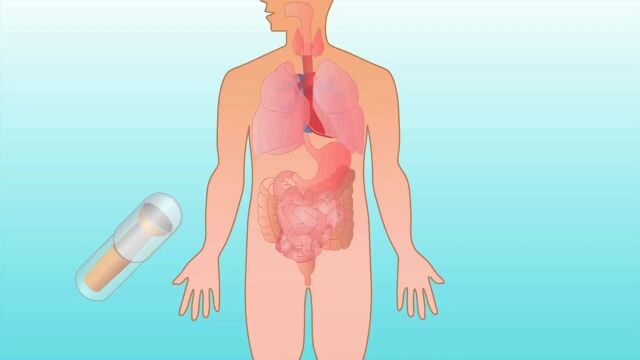 指にセンサーを挟んだり、手首にセンサーを巻いたりする従来の方法とは異なり、カプセル型のセンサーを飲み込むことによって体内から心拍と脈拍をモニターする、MITで開発中のバイタル監視システム。