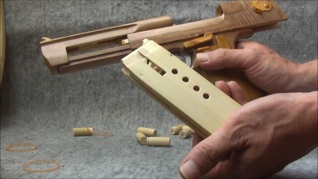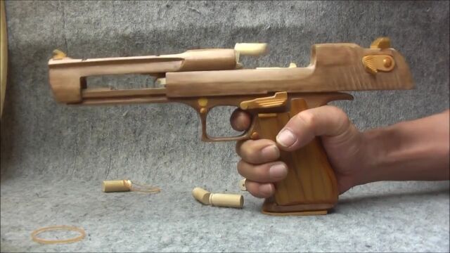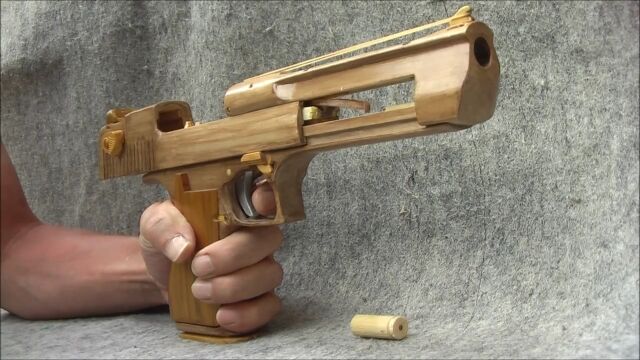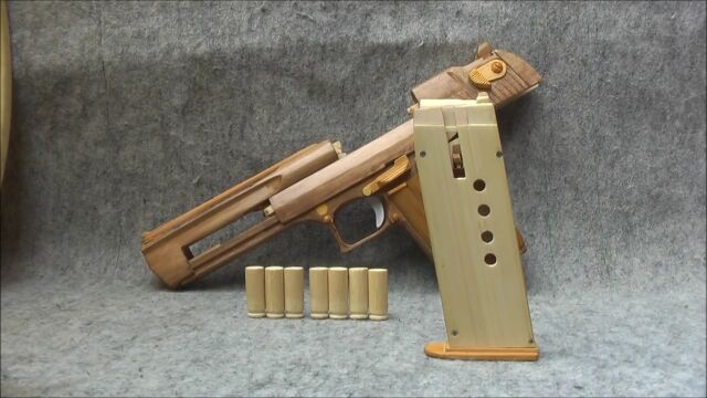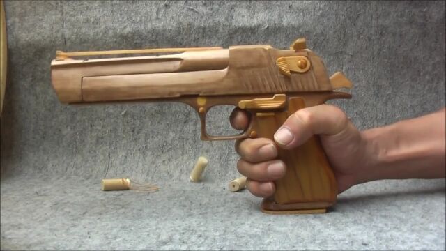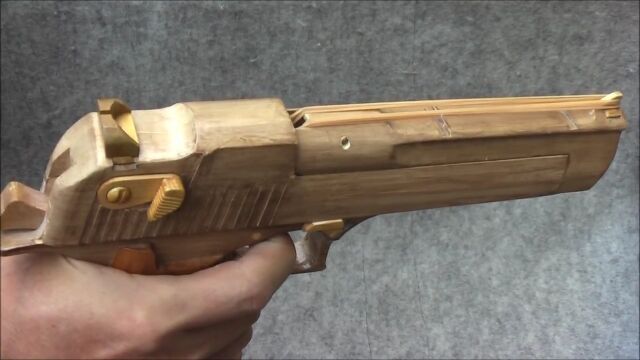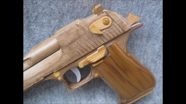 ほぼ木製とは思えない完成度のデザートイーグル輪ゴム鉄砲。凄すぎる。