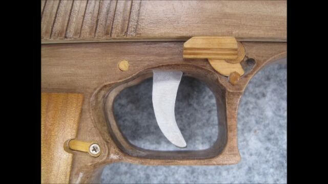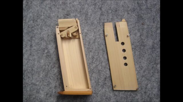 フルオート、セミオート選べるのが凄い!木製脱進機構式輪ゴム鉄砲 Owl