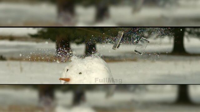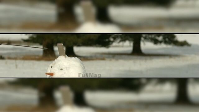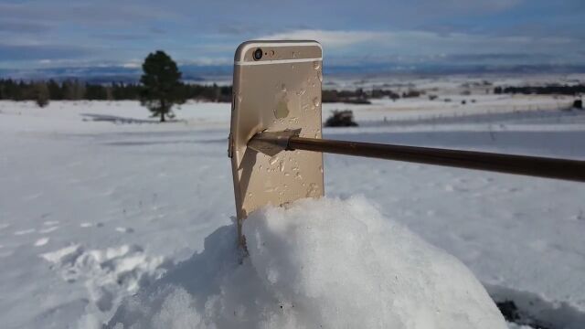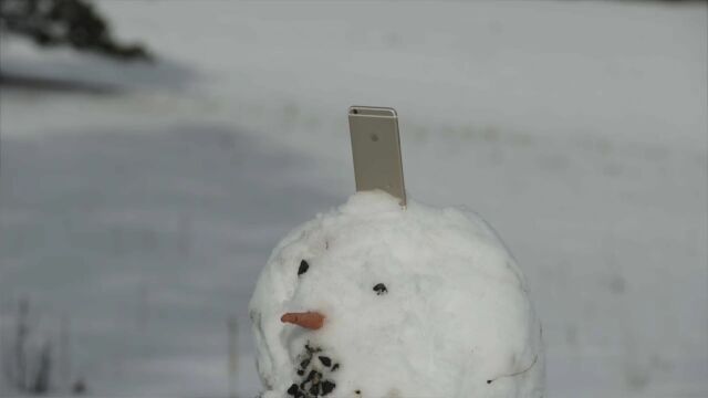 雪だるまさんの頭上にiPhone 6Sを設置し、ウィリアム・テル状態で射撃した結果はご覧のとおり。