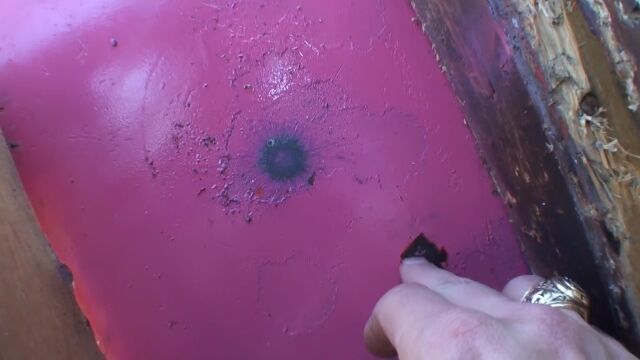 徐々に威力の高い拳銃やライフルに変えていったり、同じ銃でも銃弾に徹甲弾を使用したりして、鉄板へのダメージ具合を観察。
