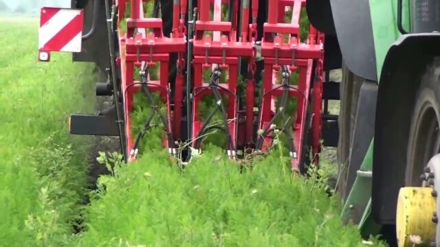 大量のニンジンを素早く、優しく、ごっそり収穫することができる農業機械「Dewulf GKIIISE」。