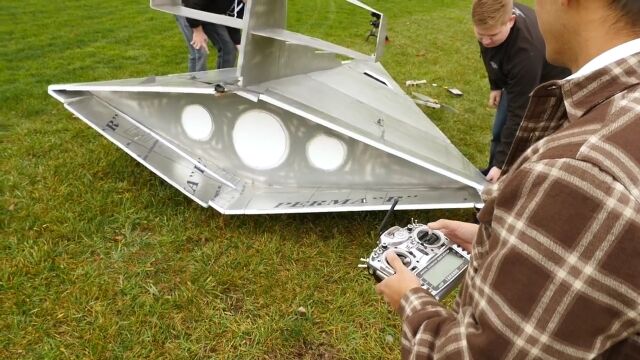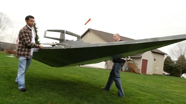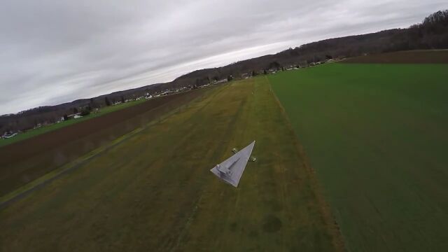 映画「スターウォーズ」シリーズに登場する帝国軍の巨大宇宙戦艦、スター・デストロイヤーの形をしたラジコン飛行機はちゃんと飛行できるのかどうかを実験してみた映像。
