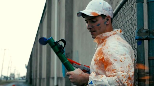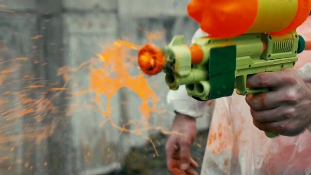 相容れない2組のペンキ屋同士が、それぞれのペンキを撃ち合い塗り合って戦う、スプラトゥーンを現実世界でやってしまったショートムービー。