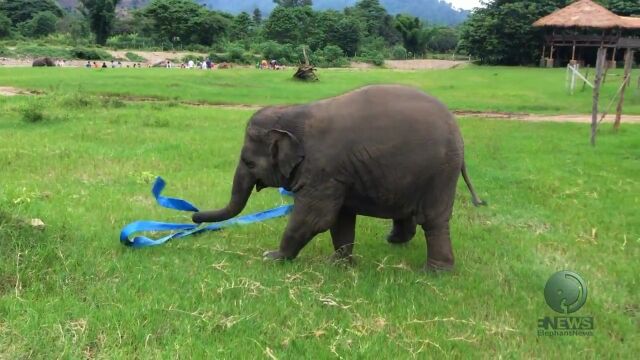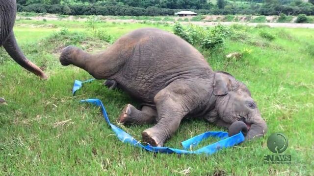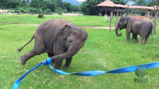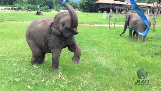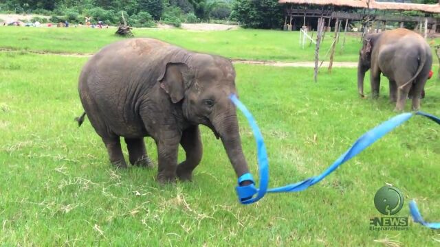 気に入らないのか?お気に入りなのか?ボロいタライをもてあそぶ赤ちゃんゾウさん