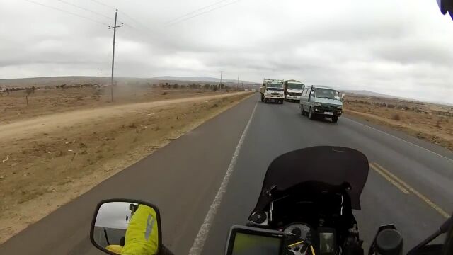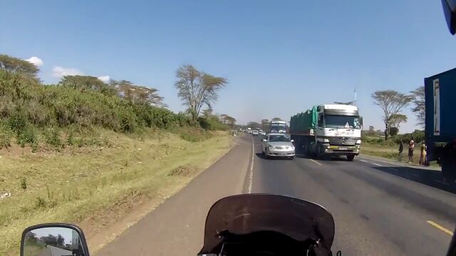 ケニアの道路は日本と同じ左側通行。当然、左側を走っていれば安全なはずなのに、無茶な追い越しをする対向車がひっきりなしに現れるせいで、左側走行していてもすごく危険。