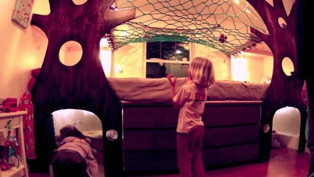 子供たちへのクリスマスプレゼントのひとつとして、パパが2日〜3日かけてリフォームした、ツリーハウス風の子供部屋。