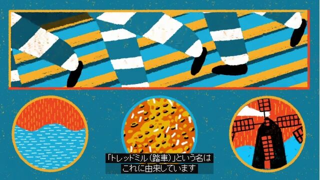 つうかこの動画の内容だと、誤解呼びそう。「ルームランナーの仕組みは元々、麦踏みの装置由来で、受刑者の罰に使われることもあったよ」ぐらいが正しいのに、それを「ルームランナーはもともと犯罪者の矯正装置だった」とするのはちょっと飛躍しすぎ