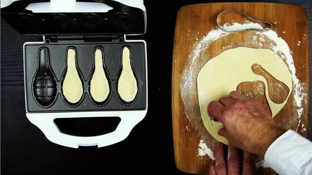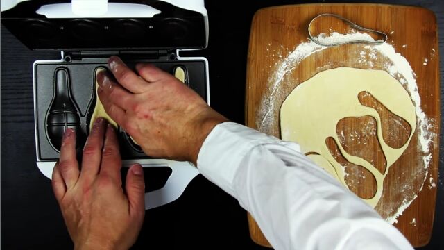 作り方は簡単で、パン生地をこねて広げたら、専用の型でくり抜き、プレートに並べてフタを閉じるだけ。