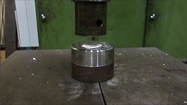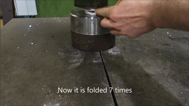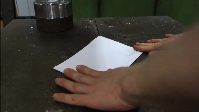 A3用紙を7回折りたたむという偉業を油圧プレス機で成し遂げた瞬間、驚くべき結果に