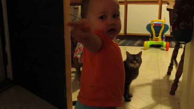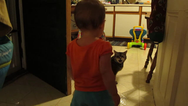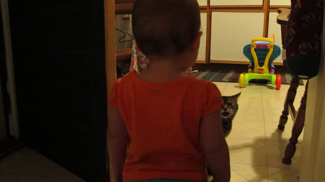 まだまともな会話が難しいけれど、おしゃべり好きらしい女の子の赤ちゃんと、彼女の家で飼われている猫のタビーちゃん。