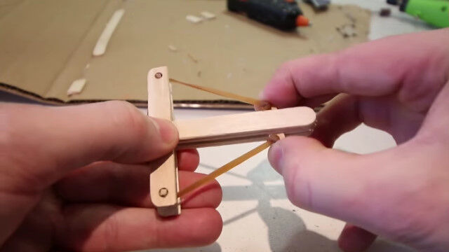 ヘアピンとアイスの棒を組み合わせた、よく飛ぶマイクロ・クロスボウの作り方