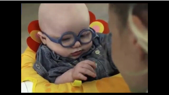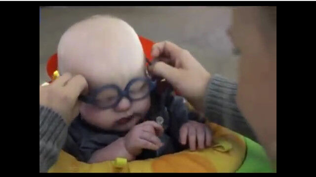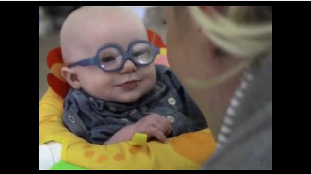 彼の視力に合うように作られた眼鏡をかけて、生まれて初めてお母さんの顔を見た瞬間がこの映像。
