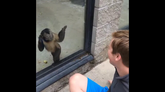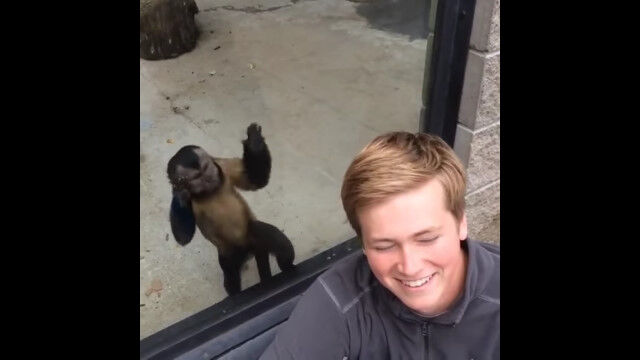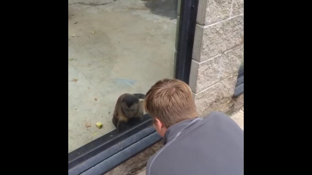 Monkey Hits Glass When Guy Turns Around