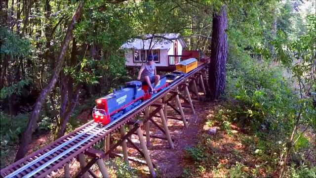 広大な自宅敷地内をぐるりと周回できるように作った、世界最長規模のミニ鉄道。