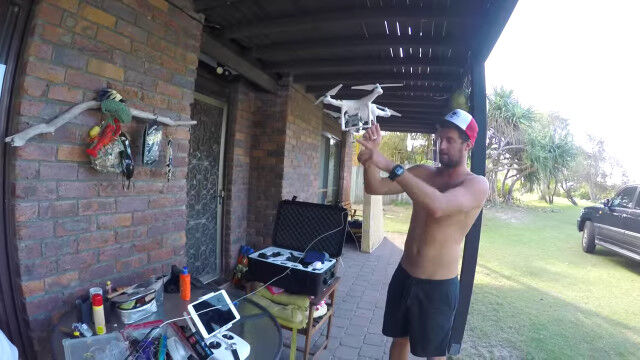 マルチコプターから釣り糸を垂らし、魚を釣り上げるという大胆な釣り