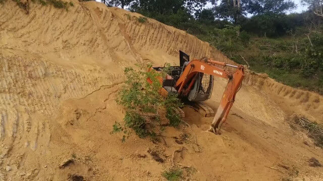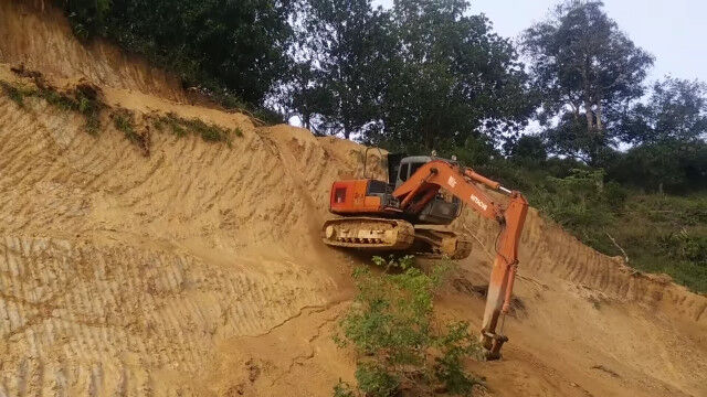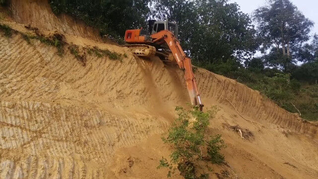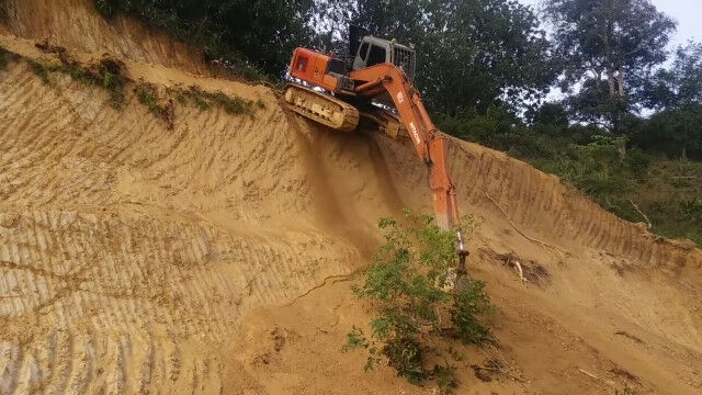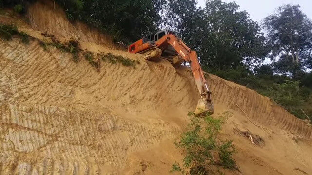 切り立った崖から器用に降りる、ショベルカーの機動力がすごい