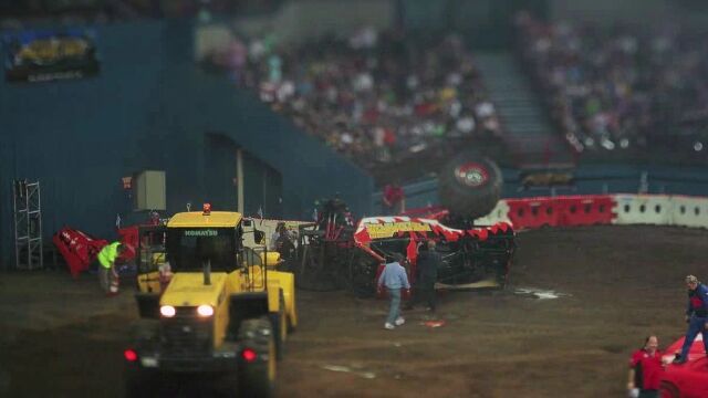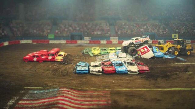 モンスタートラックが走り回って車を押しつぶしたり、車同士を衝突させたりする過激なイベントなのに、全てがミニカーに見えてしまってかわいいことこの上ない。