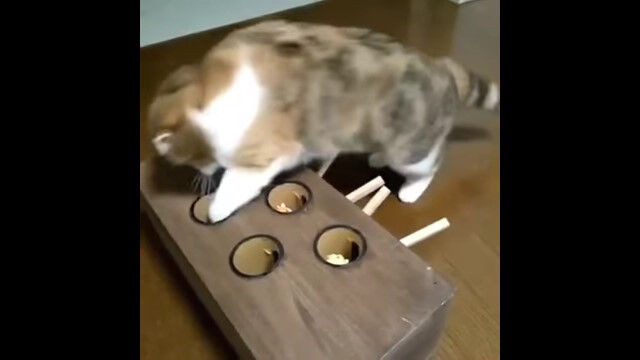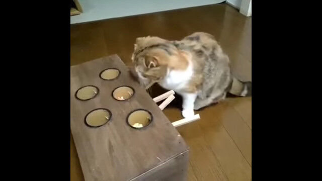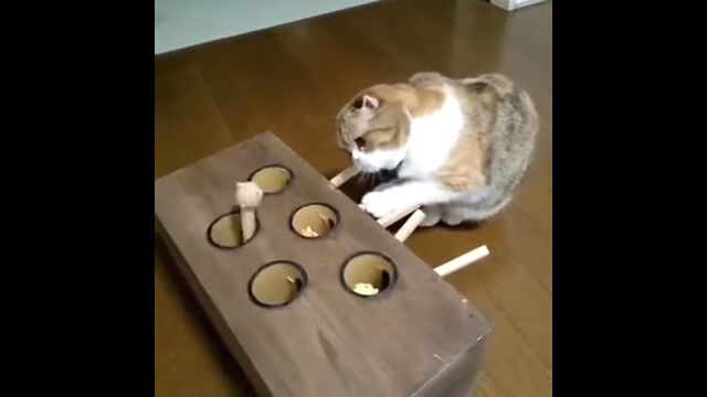 ネコ大喜び。自作のオモチャ「ネコもぐらたたき盤DX」が素敵