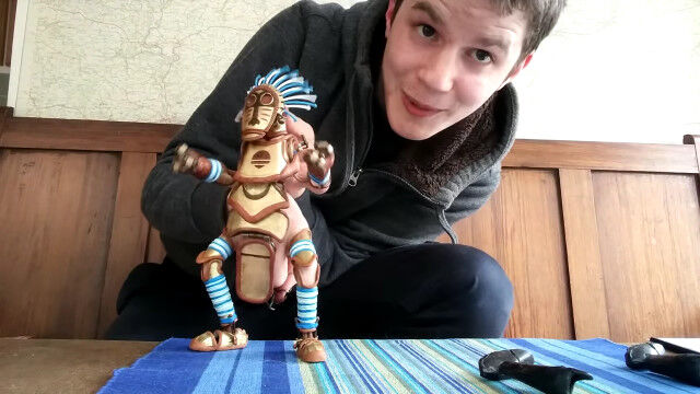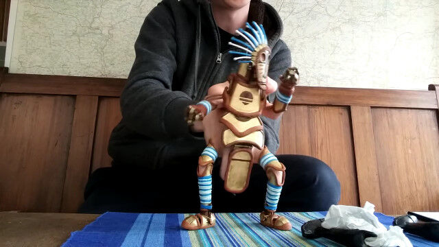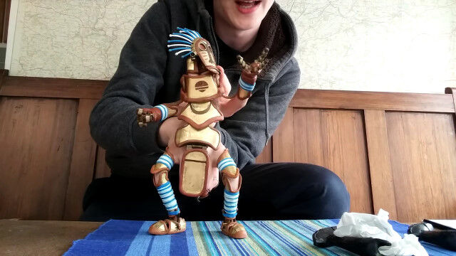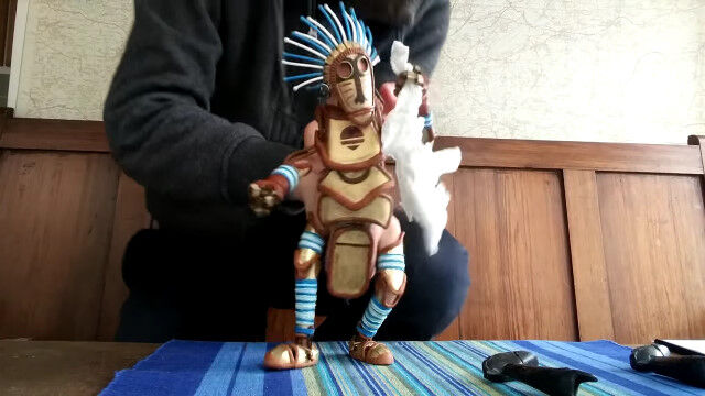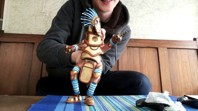 人形の上半身を左手で操作し、人形の下半身を右手で操作する、糸を使わない手作り操り人形。