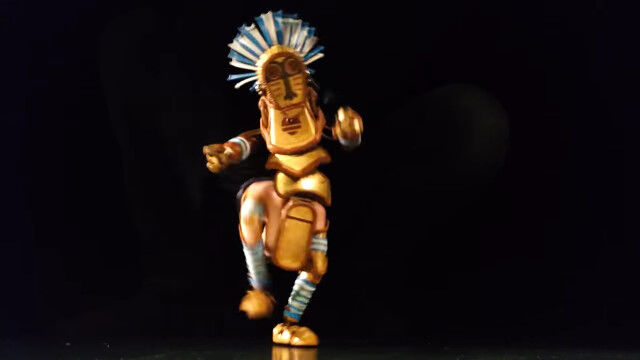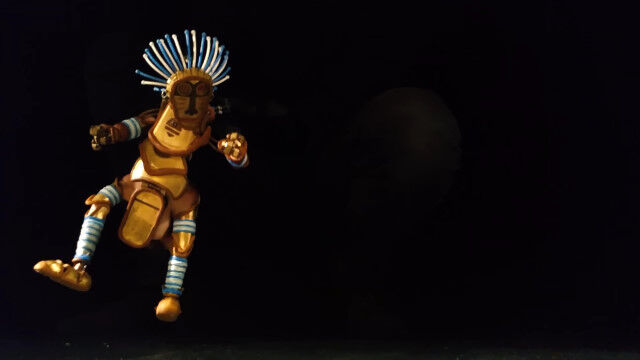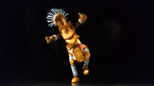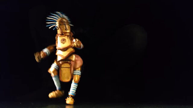 ホントに生きてるみたいに踊る、左手で上半身、右手で下半身を操る操り人形